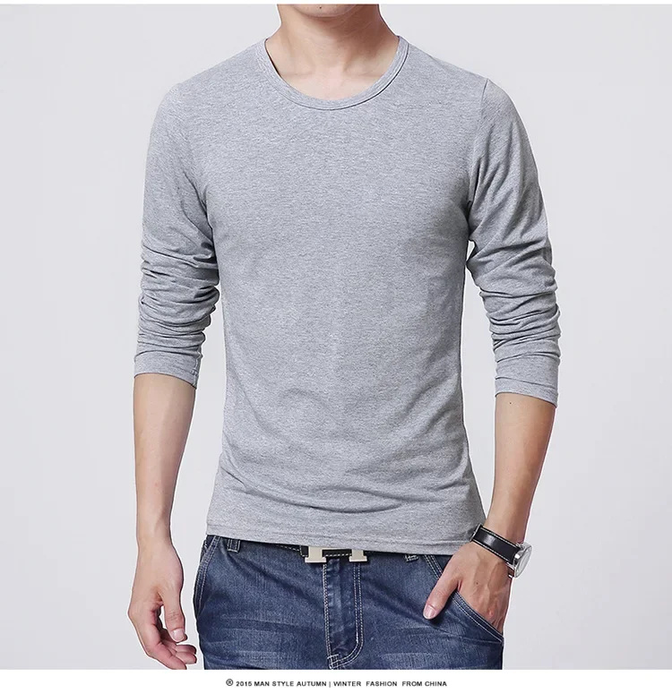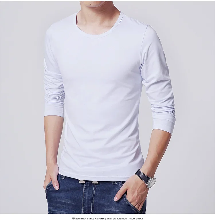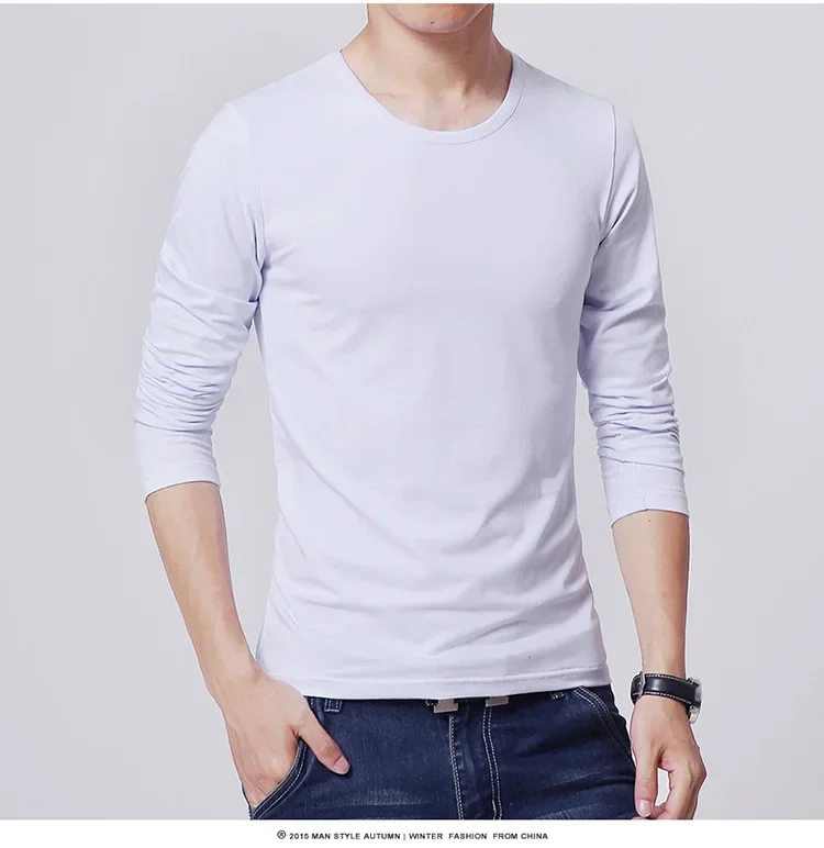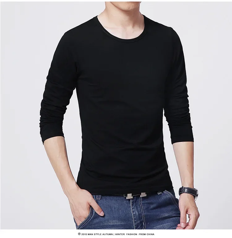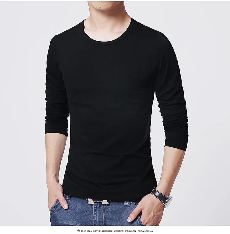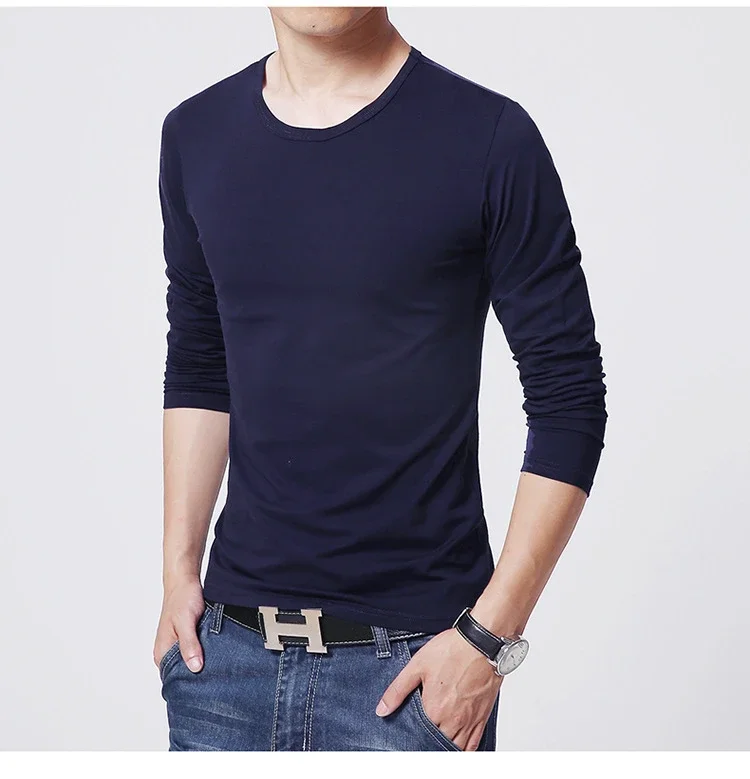 Men's T-Shirts Long Sleeve Slim Men T-Shirt Young Man Pure Color Tops Tees Shirt O-Neck For Male Boys T-shirt
