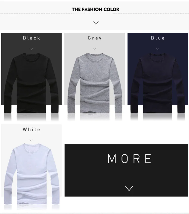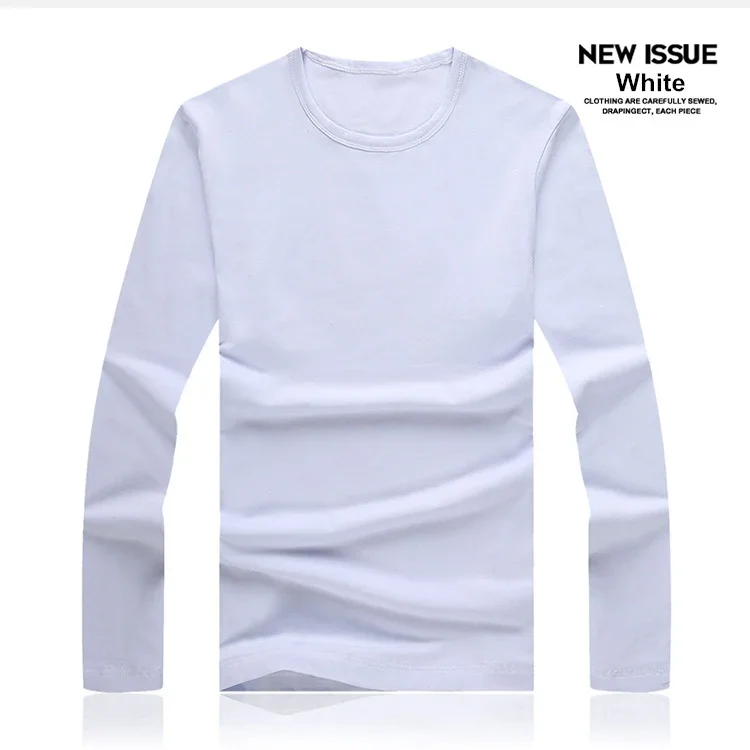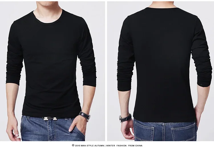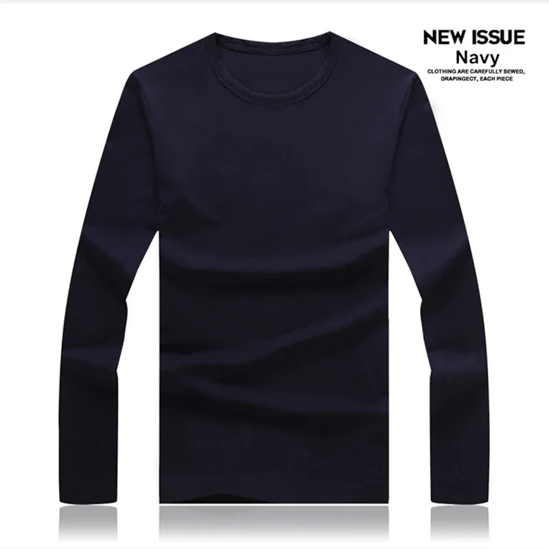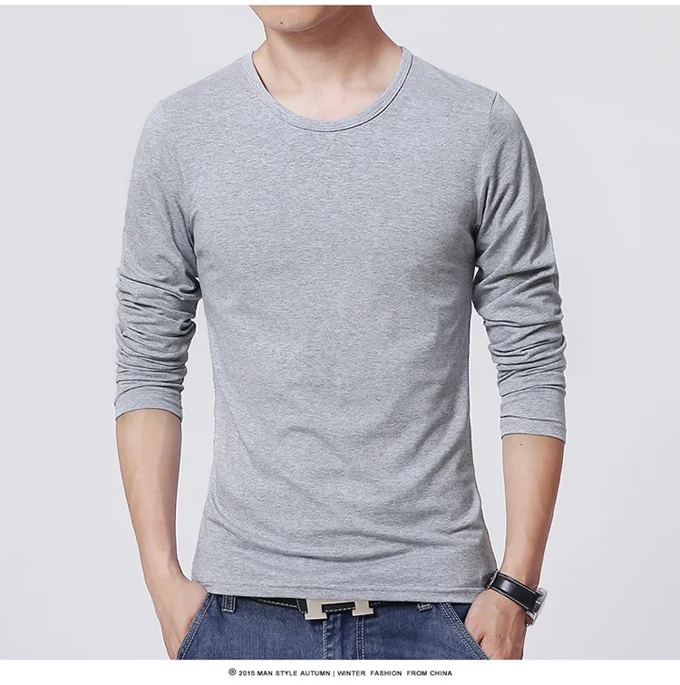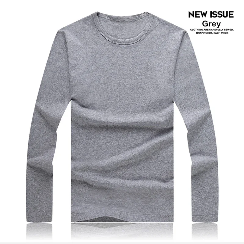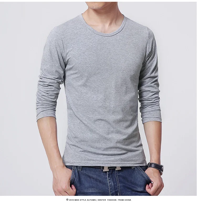 Men's T-Shirts Long Sleeve Slim Men T-Shirt Young Man Pure Color Tops Tees Shirt O-Neck For Male Boys T-shirt