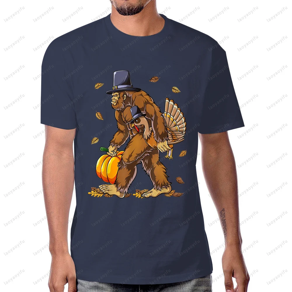 Bigfoot Turkey Pumpkin Thanksgiving Sasquatch T-shirt Casual Fashion Loose Short Sleeve Cool Man T- Shirt Y2K Women Streetwear
