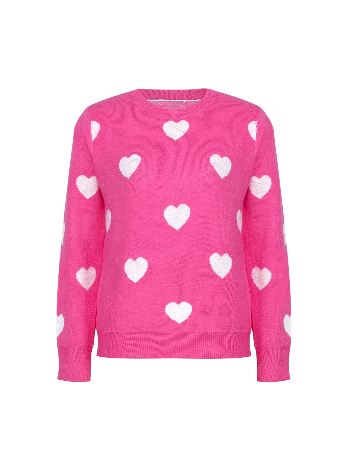 Women's Hot Pink Oversized Knit Sweater Heart Pattern Crew Neck Long Sleeve Casual Pullover Fuzzy Heart Pattern Sweater
