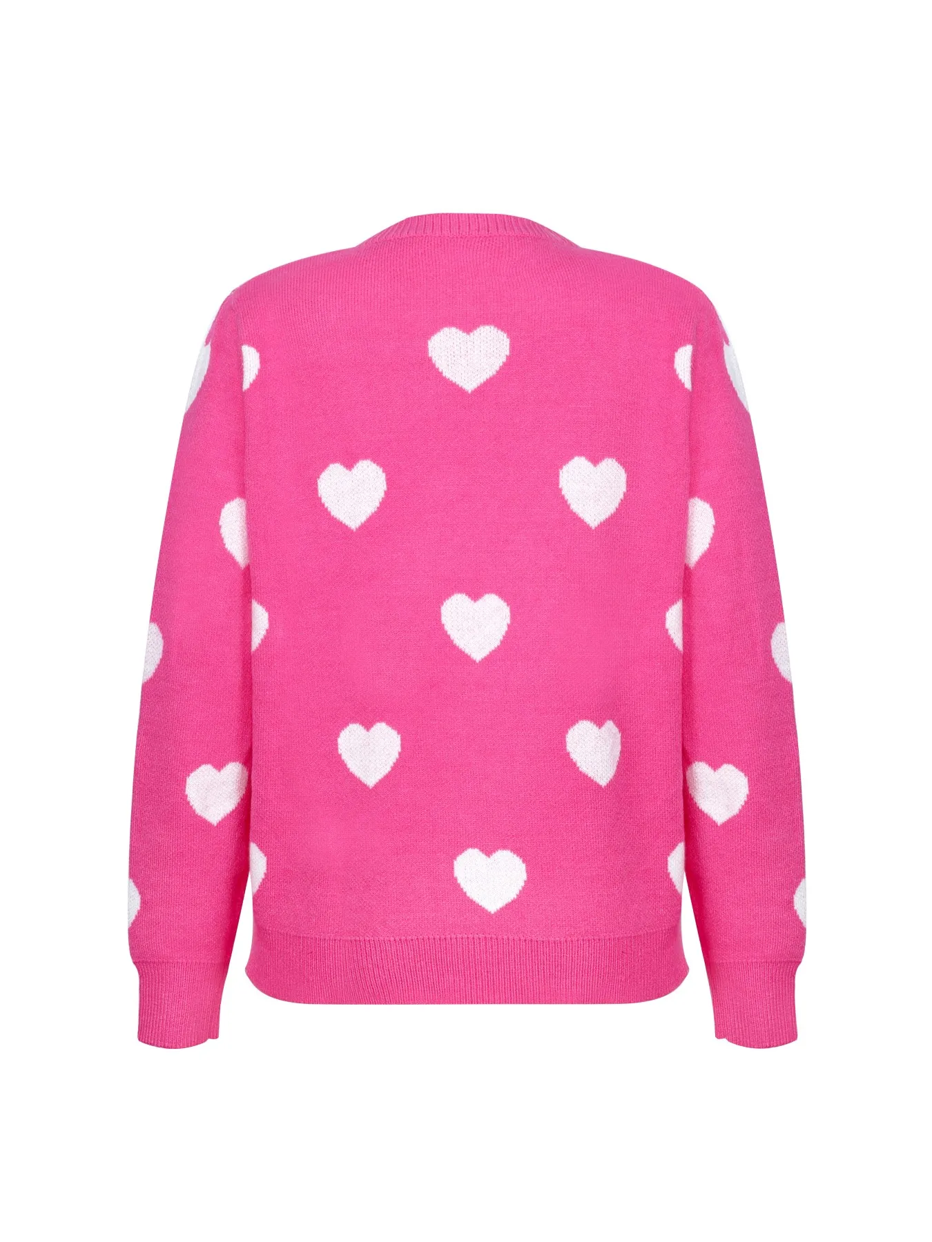 The fuzzy heart pattern adds a touch of charm and personality to this otherwise simple pullover.